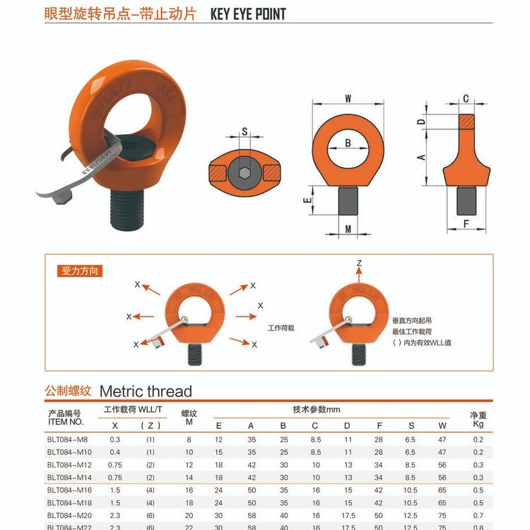 倍力特牌的倍力特眼型吊环旋转吊环螺钉UNC美制螺纹止动片旋转环橙色产品:估价:110.00,规格:M20,产品系列编号:M20 发布日期:2025-4-23